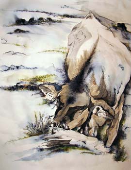 Aquarell/Tusche Zeichnung, Oberwallis (Schweiz, 2004)